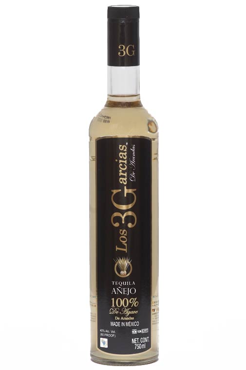 Los 3 Garcias de Arandas Tequila Reposado is 100% Blue Agave and aged 6-8 months in oak barrels. Los Tres Garcias de Arandas Tequilas are produced at Tequilas Garcia in Arandas, Jalisco.